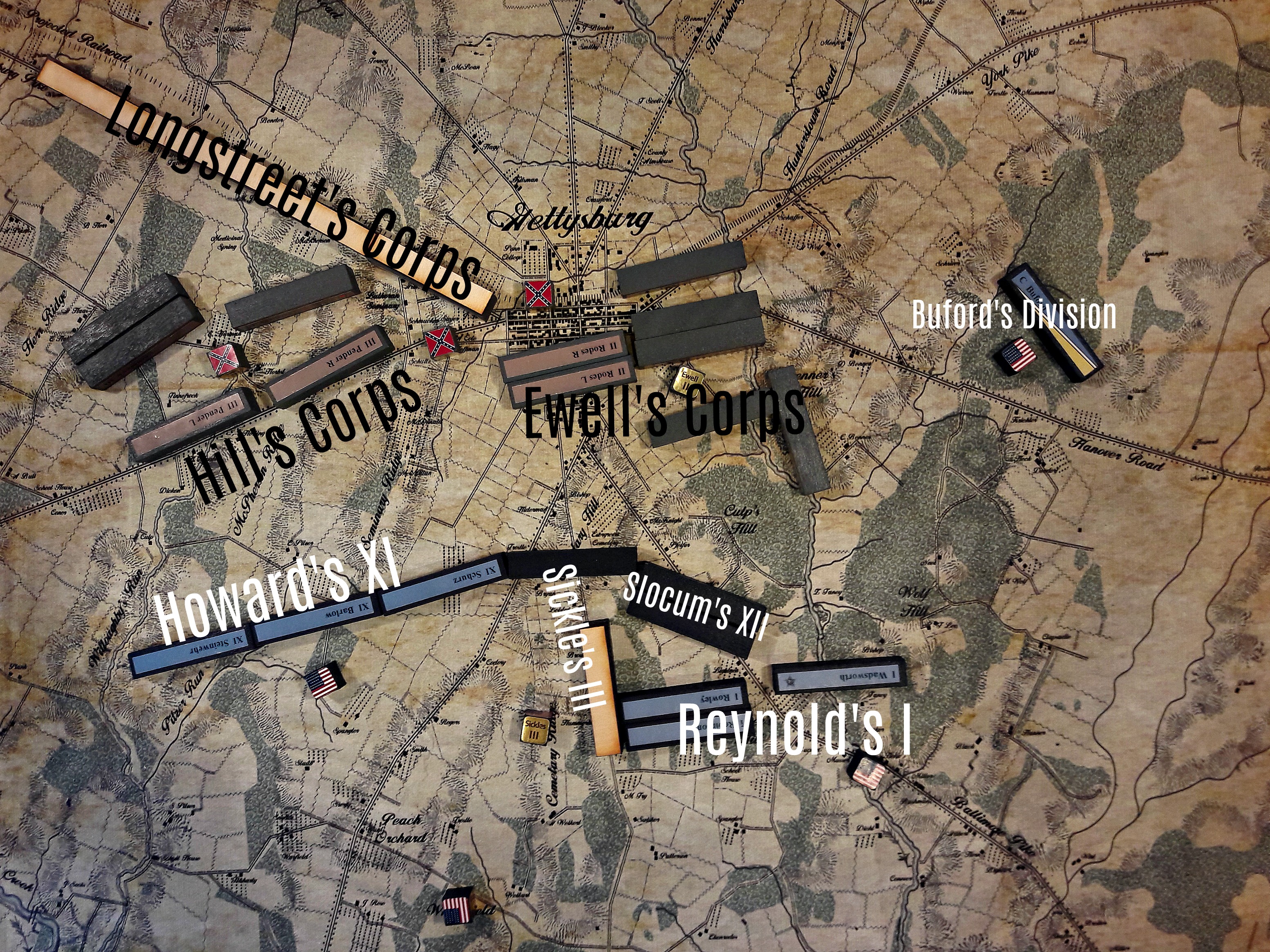 However, I for one, shall be very interested to see how this plays out. The Union has already had to fall back beyond the North edge of Cemetery Hill. During the night turn the massive Union artillery arrives, but where will it go? Would Meade have ordered a withdrawal to Pipe’s Creek, where he wanted to make a stand? Interesting questions, indeed!