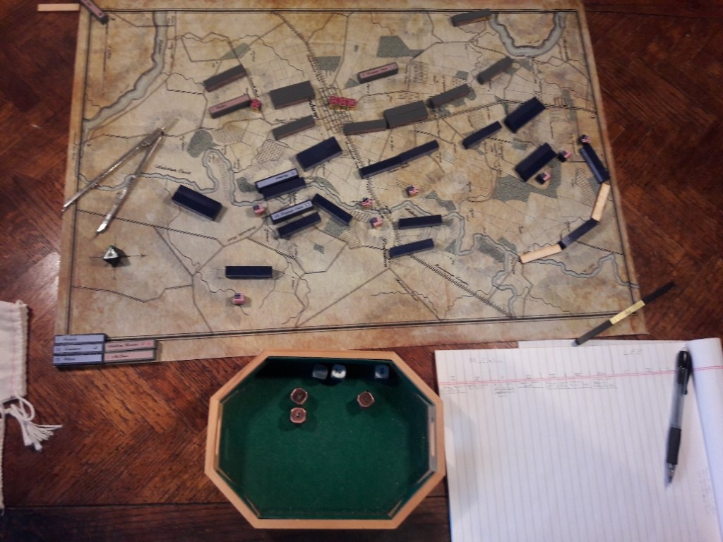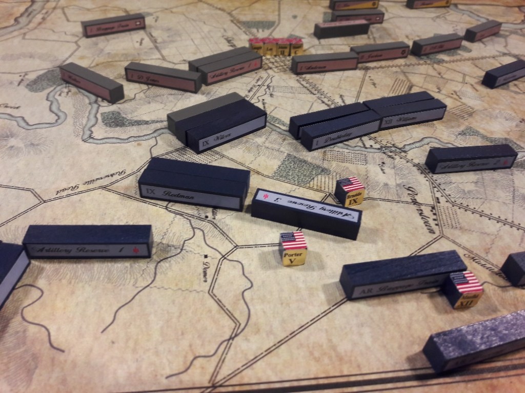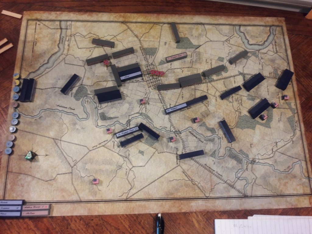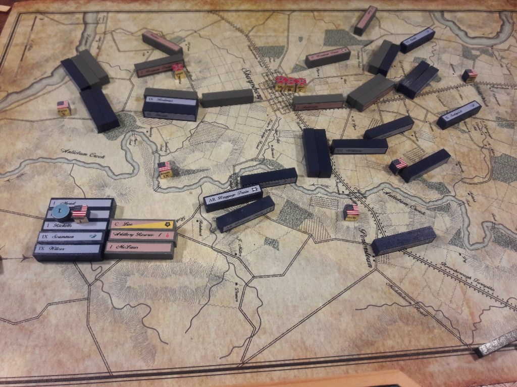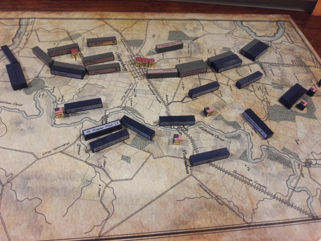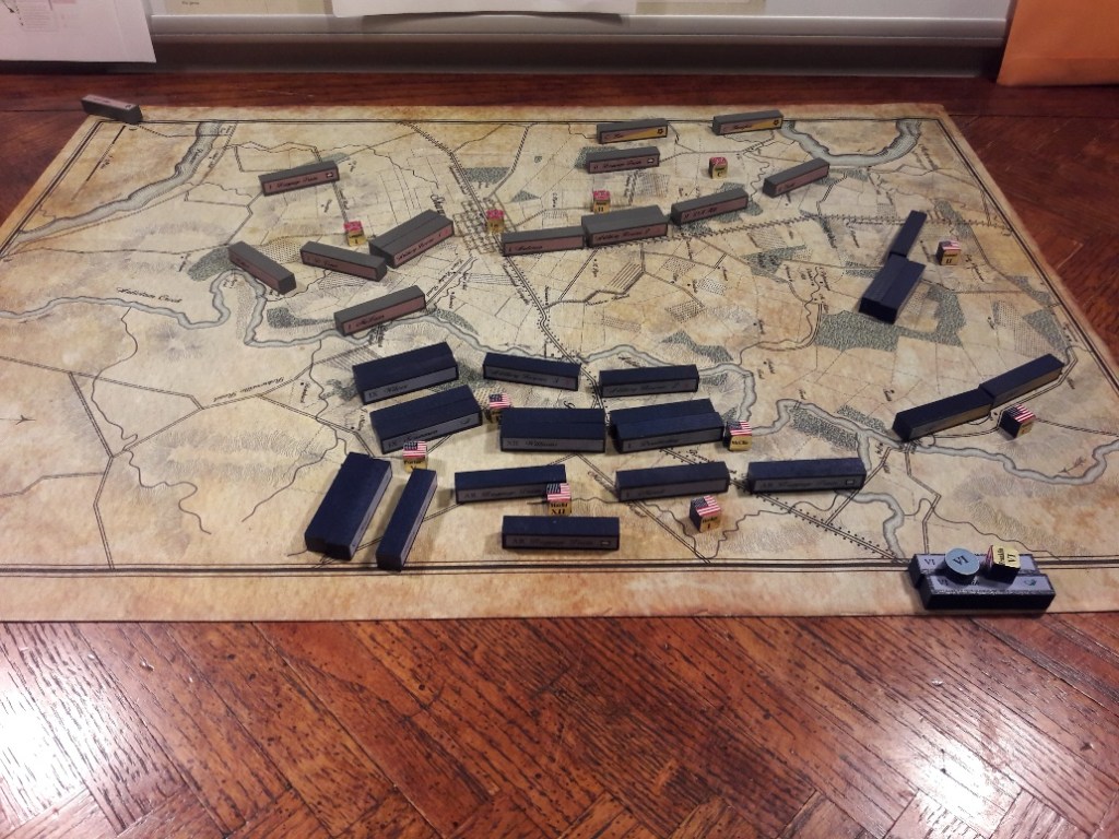 Initial setup with reinforcements (Franklin’s VI Corps on turn 3 and A.P. Hill on turn 5) at their entry points.